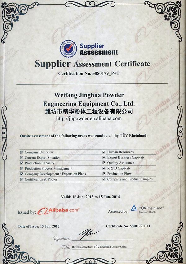 · 2010年濰坊市科技局批準(zhǔn)依托公司成立濰坊市粉體設(shè)備工程技術(shù)研究中心;