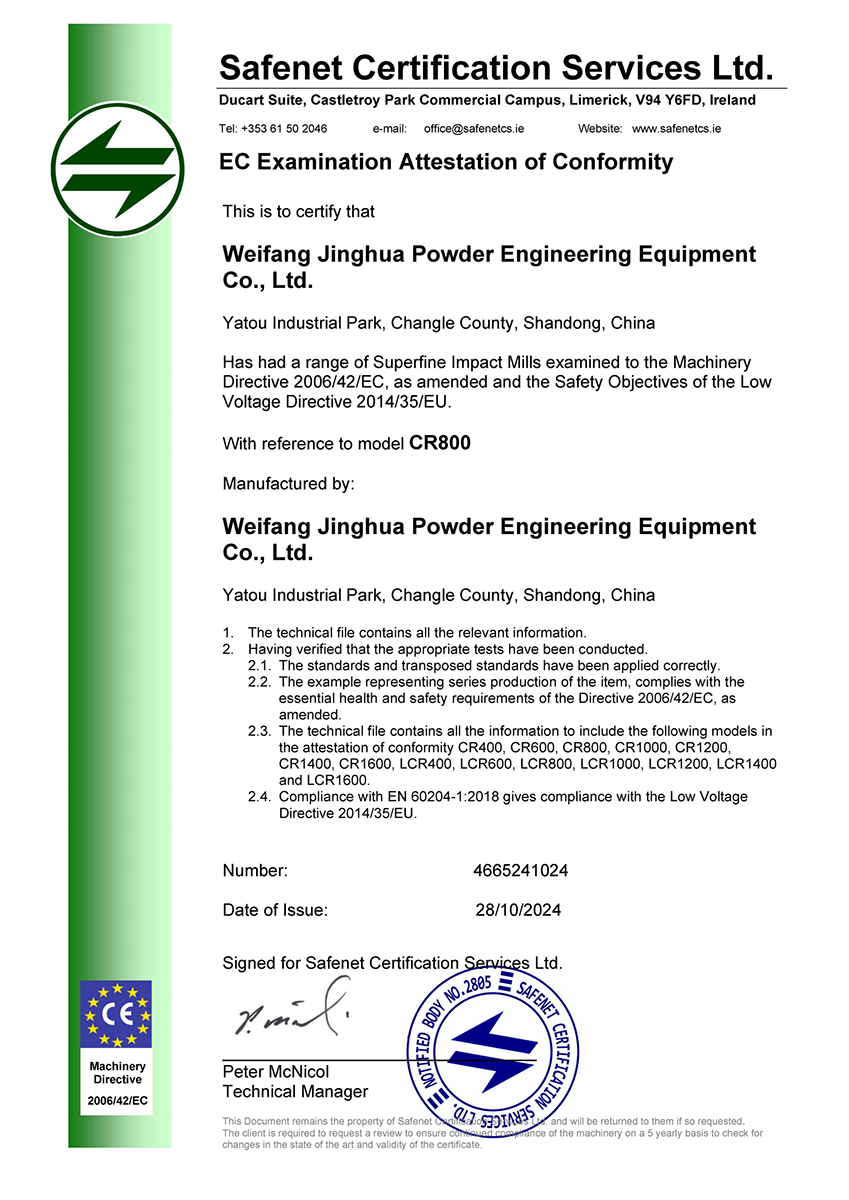 · 2018年6月氣流粉碎機(jī)通過(guò)歐盟CE認(rèn)證;